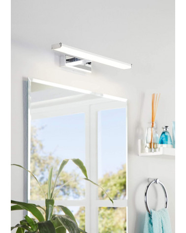Candeeiro para espelho casa de banho. Estrutura em alumínio cromado e plástico branco.