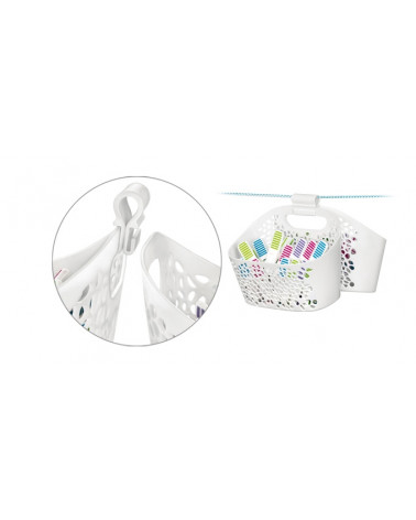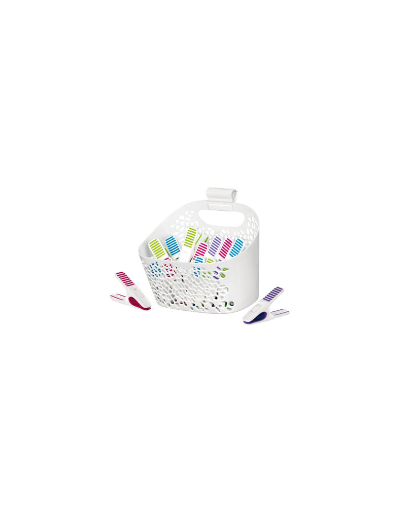 Conjunto de 20 molas para roupa e cesto para pendurar no estendal. Molas de alta qualidade com superfície antideslizante (não marcam a roupa).